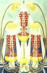 The Three of Cups: The Lord of Abundance is a warm and joyous card, which indicates a rare and precious type of love - a love which, once experienced, reminds us of the richness of shared emotion and commitment. It is also a card which refers to the wellspring of fertility, whether spiritual or material. Here we see the first seeds sown of a bright and bountiful harvest. Accordingly, the card will sometimes come up to indicate high days of celebration - like weddings or other intimate celebrations of love. The emotional quality represented by this card is deep and unusual - indicating the love felt not only by lovers, but also the love between close friends, or family. These relationships are gifts, which need to be cared for with great respect and gratitude. The Lord of Abundance offers one word of warning - this type of love cannot be created, nor engineered. When it occurs in our lives we are lucky and blessed. Some people spend a lifetime looking for such depth of emotion. And sometimes, people try to pretend it exists where it does not. So when you raise this card in a reading be aware that you are fortunate indeed!